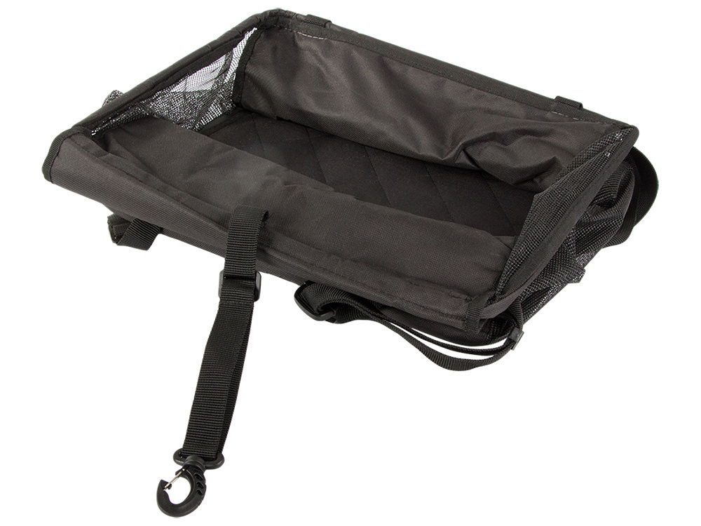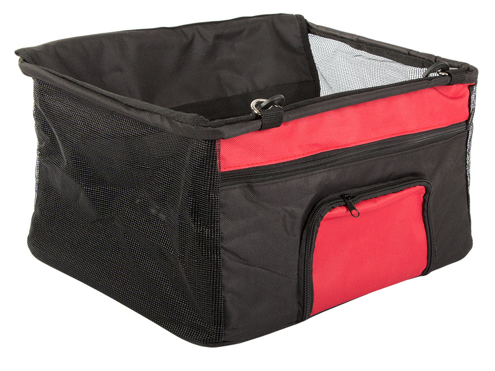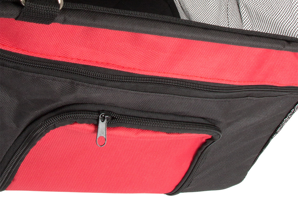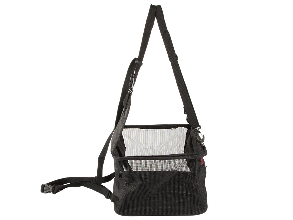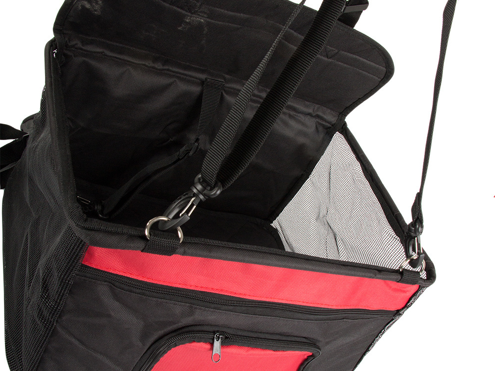 Boczne ścianki wykonane z siatki dla lepszej wentylacji i widoczności Dodatkowo fotelik posiada z przodu kieszonkę w którą możemy schować smakołyki lub małą zabawkę.