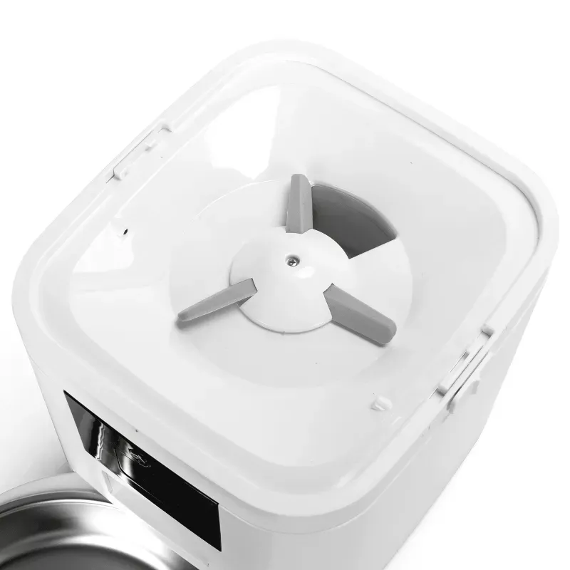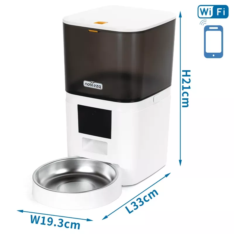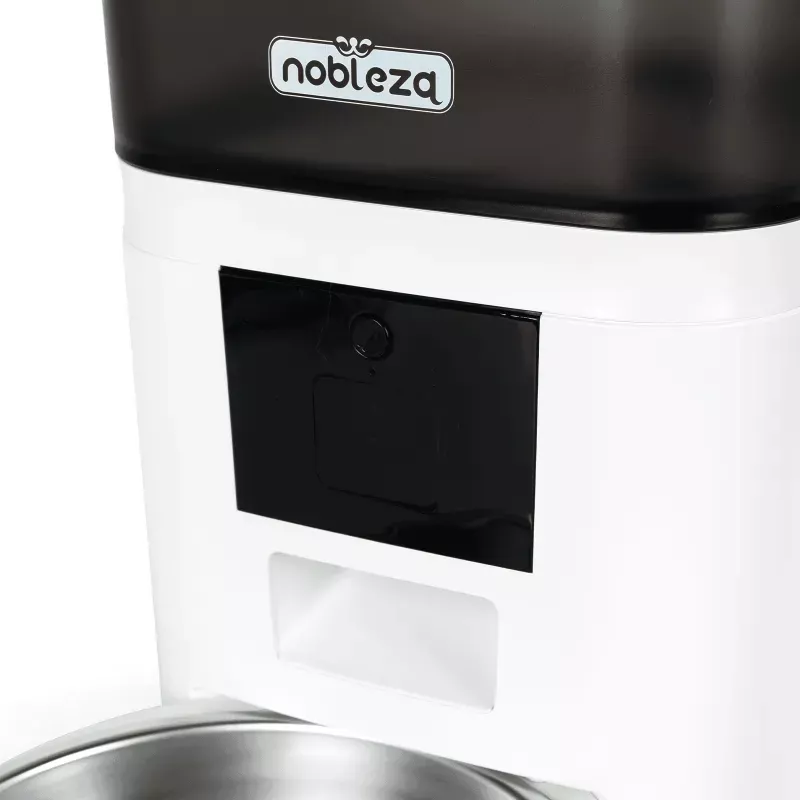 Rewolucyjny sposób karmienia Twojego pupila! Ten nowoczesny dozownik karmy łączy elegancki czarno-biały design z zaawansowaną technologią, idealnie wpisując się w każde wnętrze. Półprzezroczysta górna część pozwala na łatwe monitorowanie poziomu karmy, podczas gdy stabilna biała podstawa zapewnia bezpieczeństwo użytkowania.
