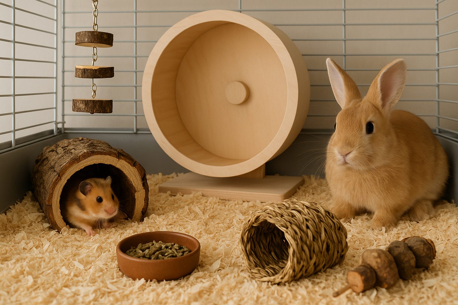 Zarówno chomik, jak i królik potrzebują zabawek i elementów do aktywności – tunele, kołowrotki (dla chomików) czy gryzaki dla królików. Ważne, by były z naturalnych materiałów i nie zawierały toksycznych substancji. Regularnie sprawdzaj stan akcesoriów, by uniknąć skaleczeń czy połknięcia niebezpiecznych elementów. Pamiętaj też, by klatka stała w spokojnym miejscu, z dala od przeciągów i bez bezpośredniego słońca.