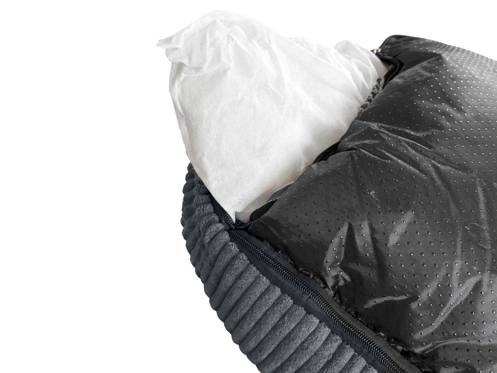 Antypoślizgowa warstwa zapobiega przesuwaniu się legowiska, co gwarantuje stabilność nawet na śliskich powierzchniach.