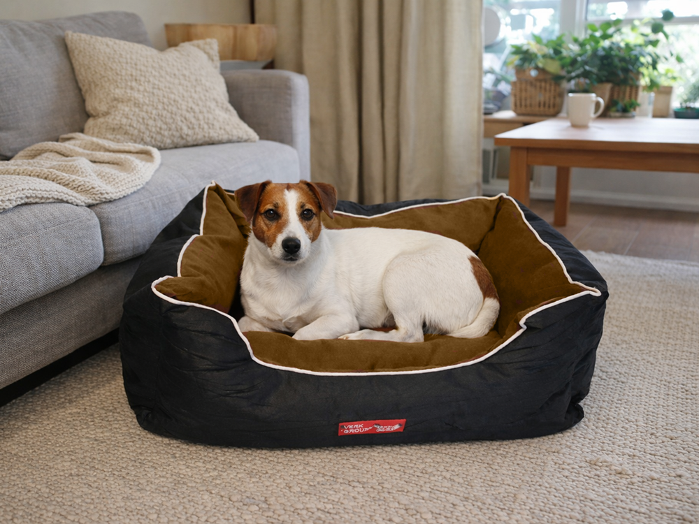 Stylowa kanapa dla psa doskonale wpisuje się w nowoczesne wnętrza. Prosty, naturalny wygląd i neutralne kolory sprawiają, że legowisko pasuje do każdego pomieszczenia.