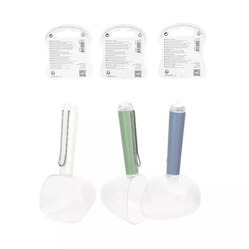 Łopatka do nakładania karmy ma grubą rączkę zapewniającą pewny chwyt, klips ze stali nierdzewnej umożliwiający wygodne przymocowanie do opakowania oraz dużą pojemność, która pozwala zaoszczędzić czas i uniknąć rozsypania. Suchą karmę z łatwością nałożysz swojemu pupilowi.