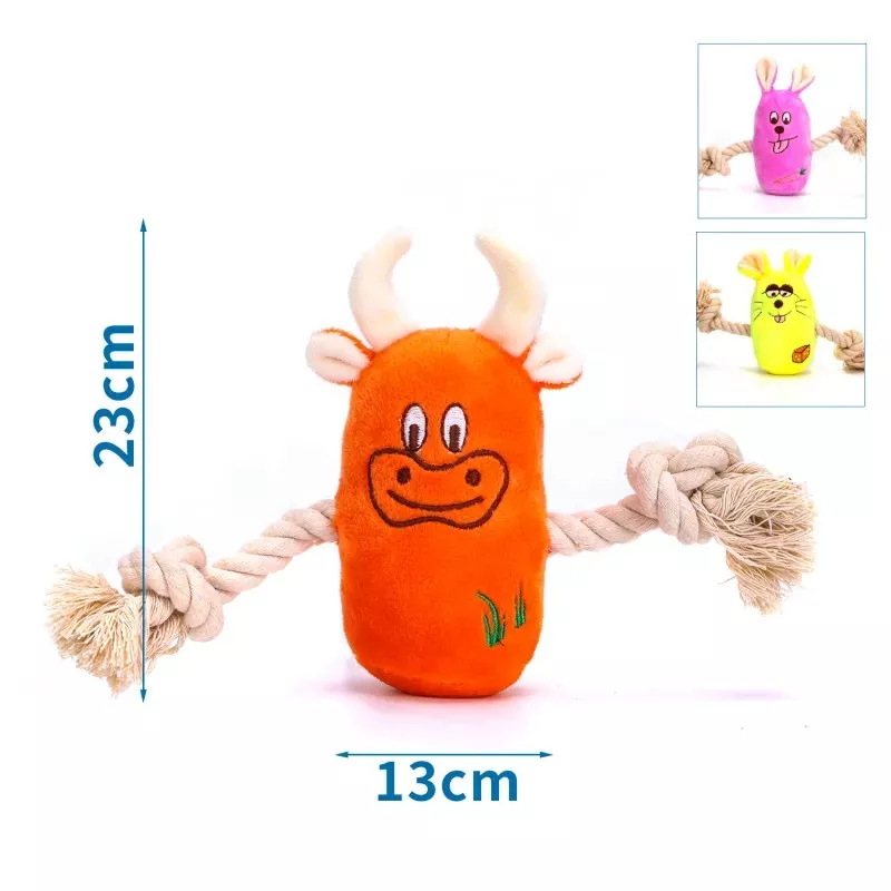 Strona główna » Zabawki dla zwierząt » Pluszowa zabawka kreskówkowa uśmiechnięta buzia królik/sznur/krowa