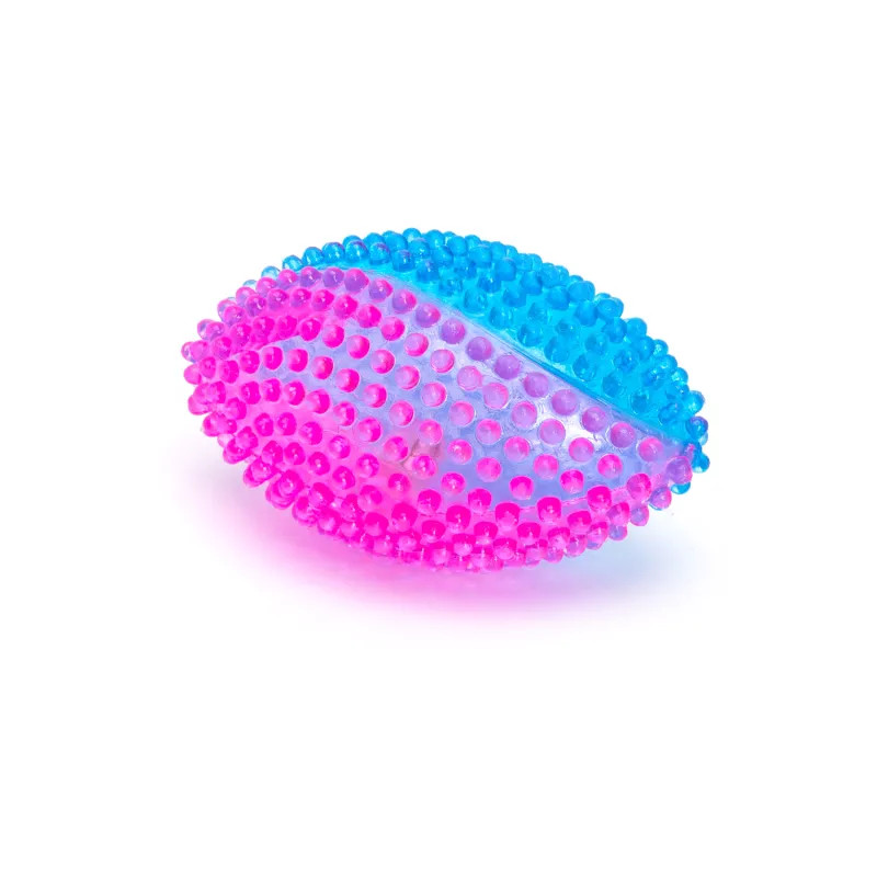 Kolczasta powierzchnia zapewnia lepszy chwyt podczas zabawy, jednocześnie masując dziąsła psa. Zabawka sprawdza się doskonale podczas wieczornych spacerów, zwiększając widoczność i bezpieczeństwo.