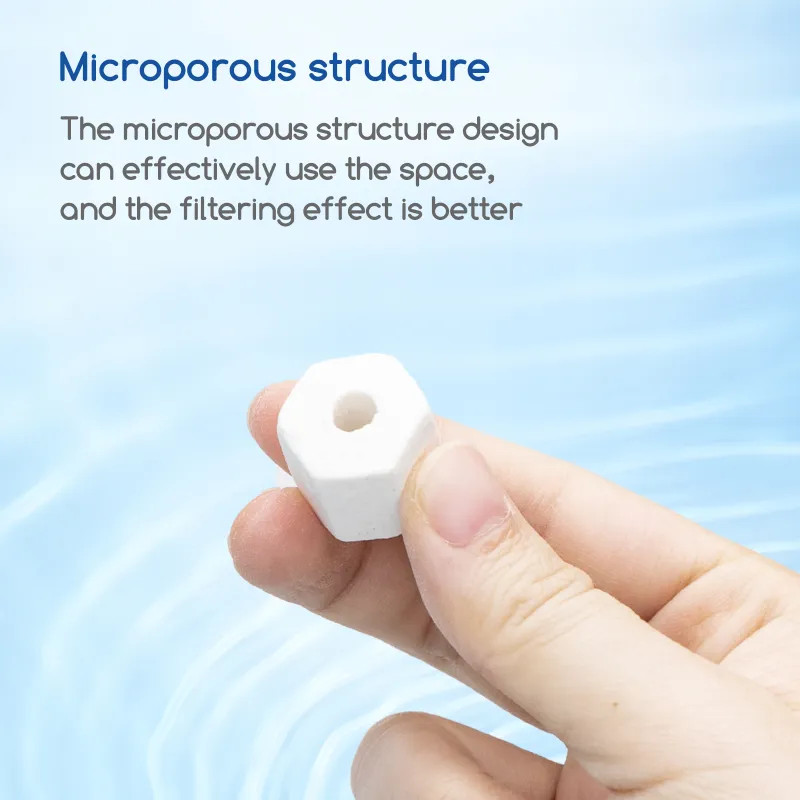 Umieszczony w systemie filtracyjnym akwarium, o mikroporowatej strukturze do hodowli bakterii nitryfikacyjnych, dzięki czemu woda staje się bardziej przejrzysta, eliminująca potrzebę częstych podmian wody i nadaje się do ponownego użycia