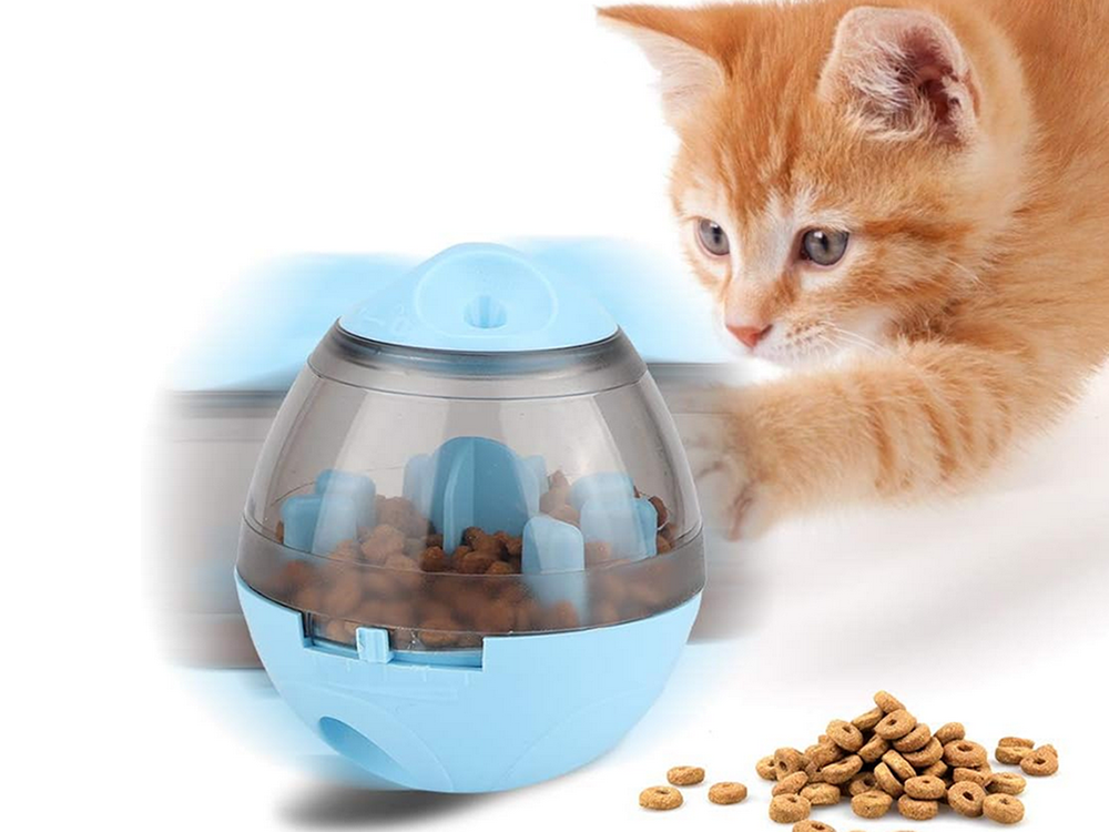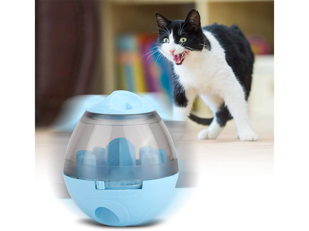 Interaktywna zabawka dla psa i kota, która sprawi radość każdemu pupilowi. W górnej części znajdują się otwory, dzięki którym ulatnia się zapach samkołyków co zachęca zwierzaka do zabawy. Do środka pojemnika można wsypać ulubioną suchą karmę. Gdy zwierzak poczuje i zobaczy w środku przysmak, próbuje się do niego dostać wprawiając w ruch zabawkę.