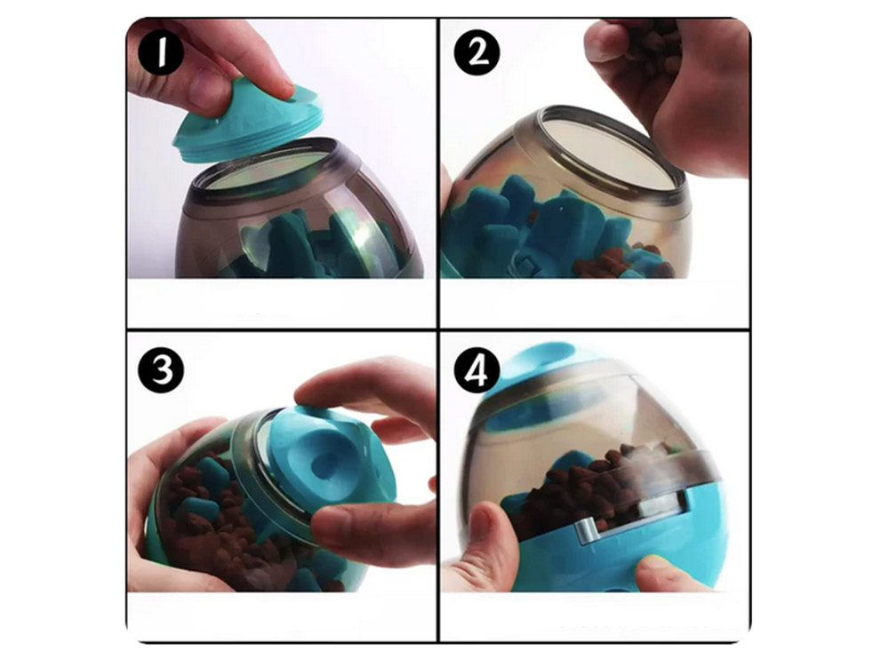 Dzięki wewnętrznemu urządzeniu blokującemu labirynt, kula dozująca smakołyki dla psów została zaprojektowana w celu ograniczenia ilości smakołyków, włożenia jedzenia do pojemnika i umożliwienia zwierzętom interaktywnego jedzenia i powolnego karmienia.